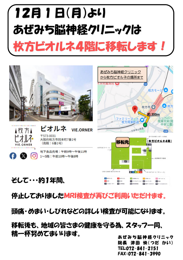 「枚方市、寝屋川市、交野市の”あたま”専門のクリニック」